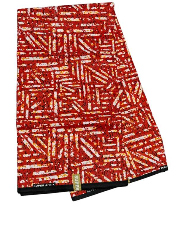 Ignite your style with this fiery red geometric wax print that captures the bold rhythm of African pride in every yard.